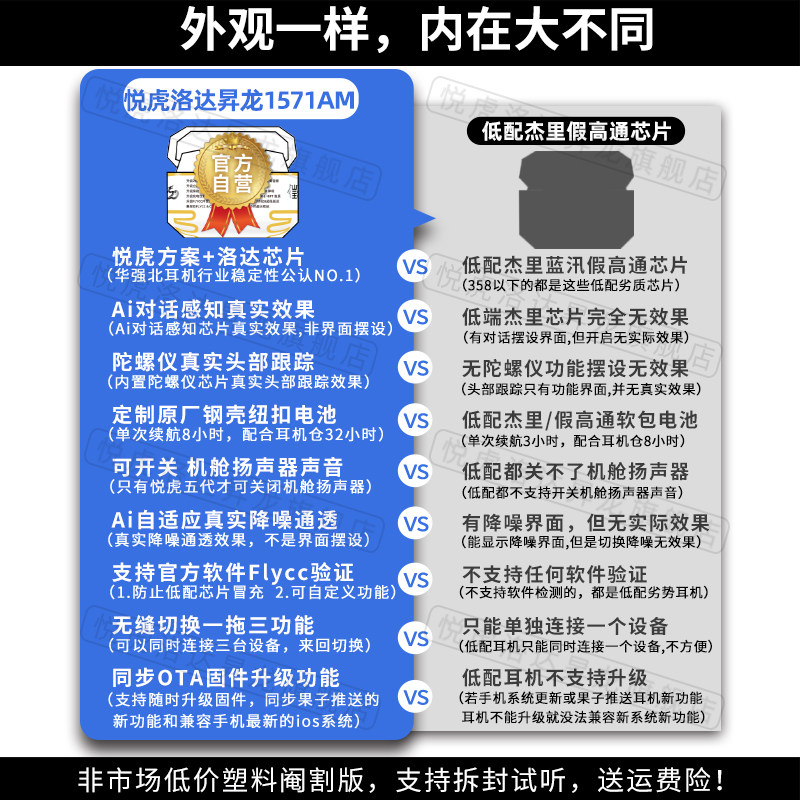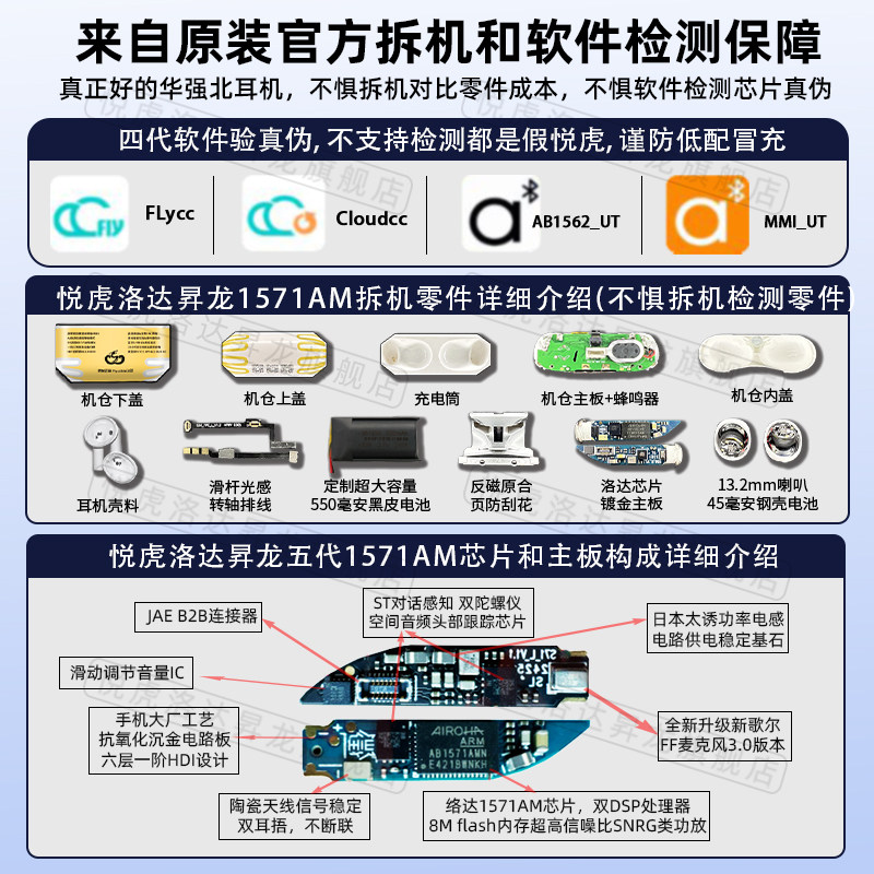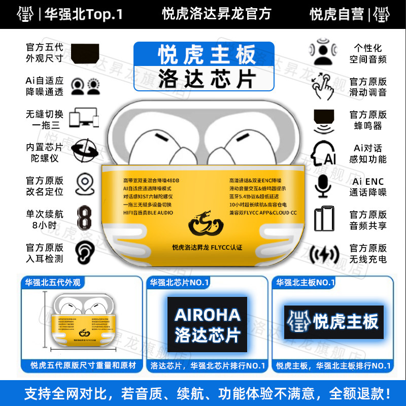 悦虎正品 顶配洛达昇龙华强北蓝牙耳机1571AM五代pro2降噪六代air4