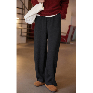 高腰显瘦长裤 solighter 女秋冬2025新款 羊毛混纺针织弯刀裤 法式