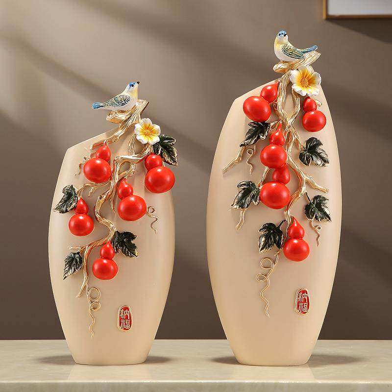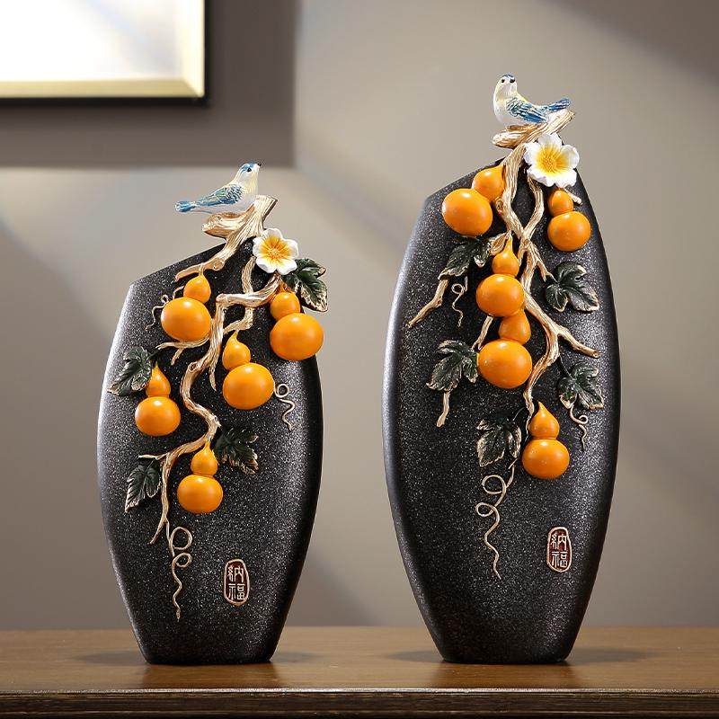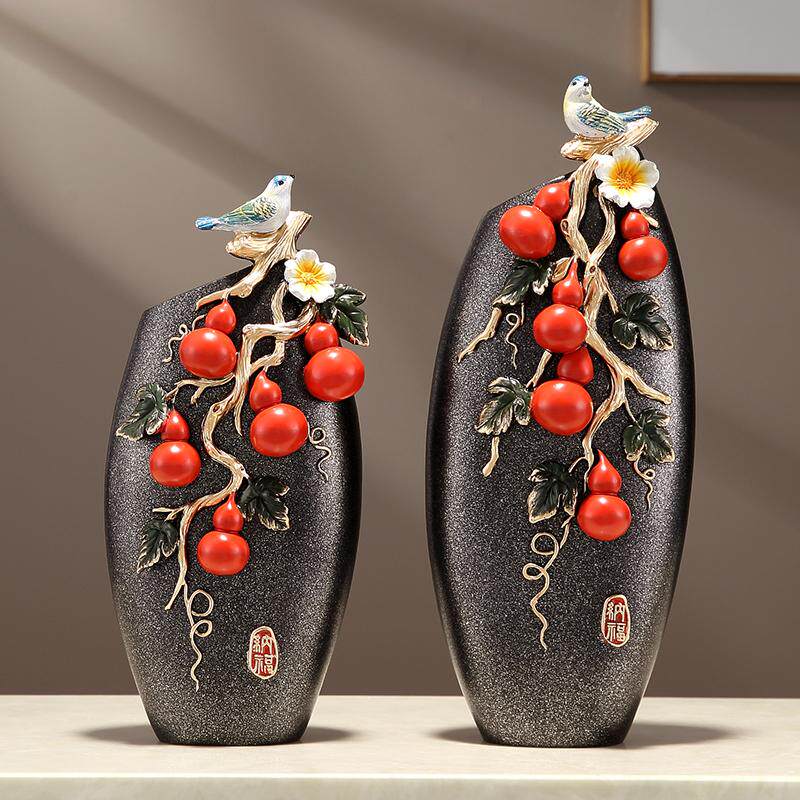 新中式 饰品 五福临门台面轻奢花瓶一对摆件客厅玄关家居创意工艺装