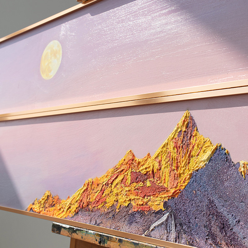 日照金山玄关装 饰画大芬村手绘油画客厅挂画高级感入户正对门壁画