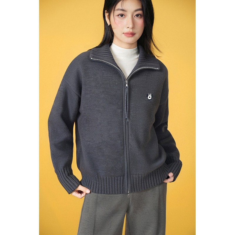 加厚时尚 内搭可外穿针织开衫 外套 2025新款 百家好立领毛衣女秋冬季