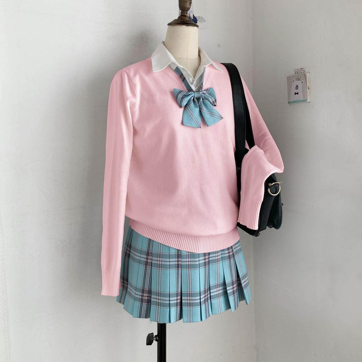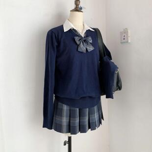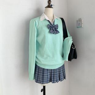 JK制服百搭学院风校供感秋冬女 设计感6色针织衫 假两件V领毛衣