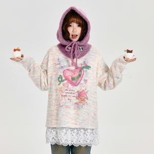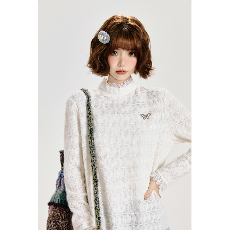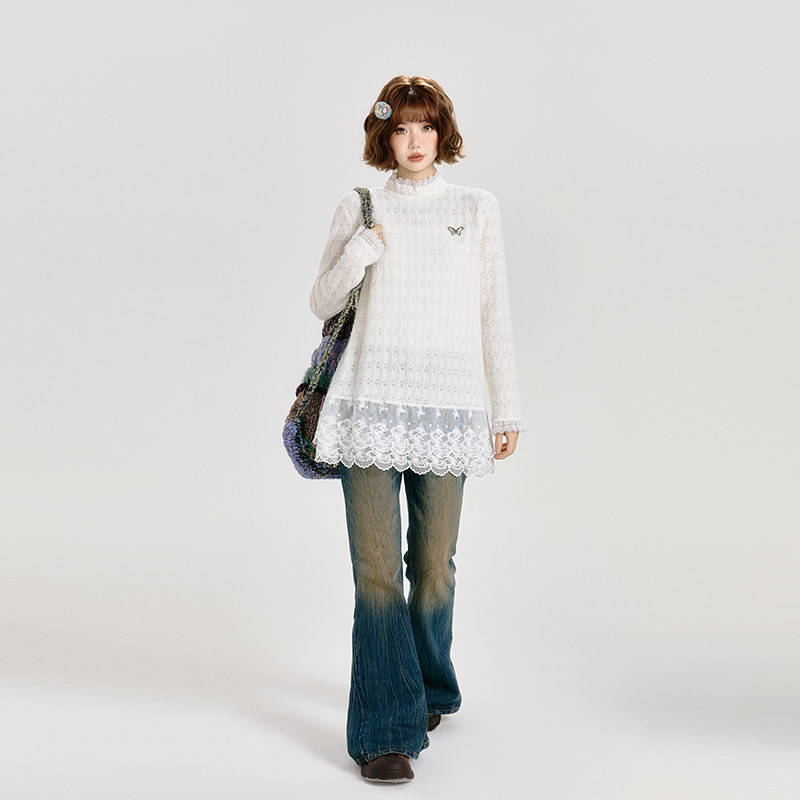 t恤女设计感叠穿屁帘打底衫 Girlyhalo美式 复古蕾丝拼接小高领长袖