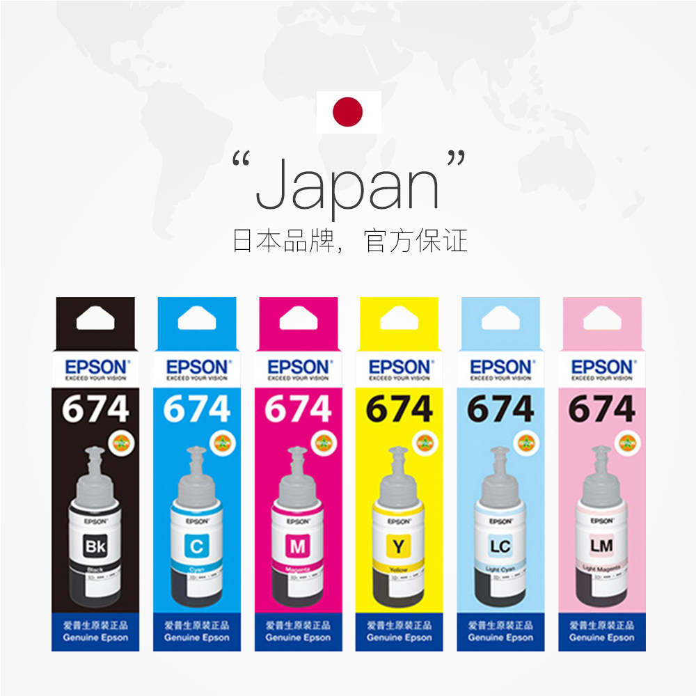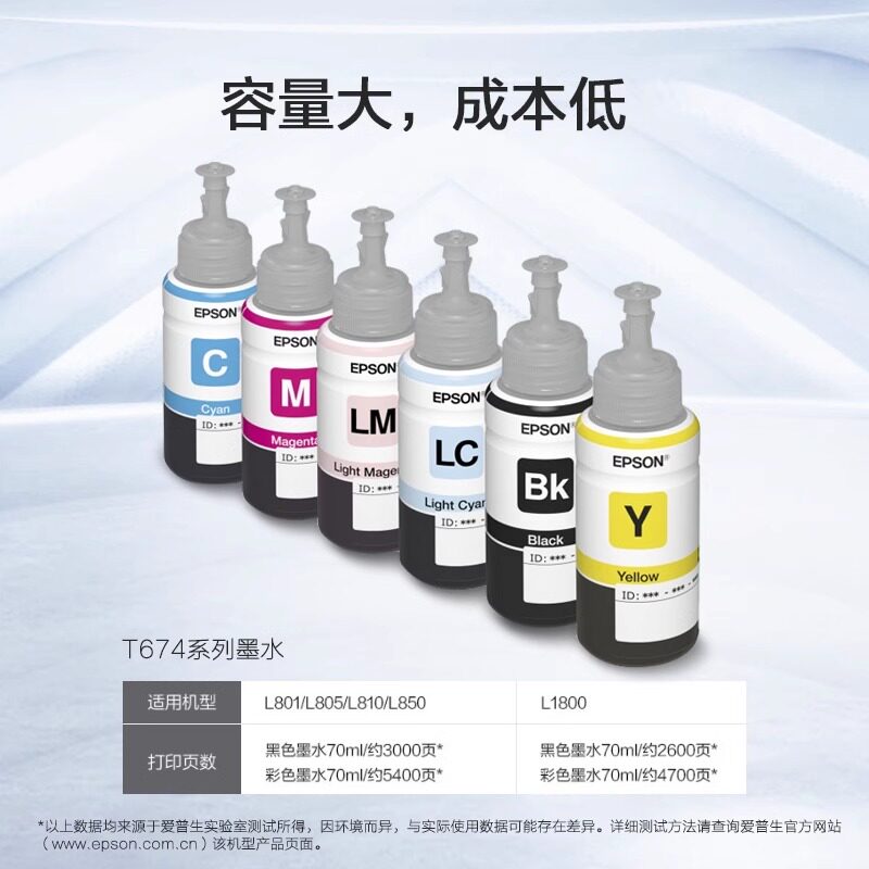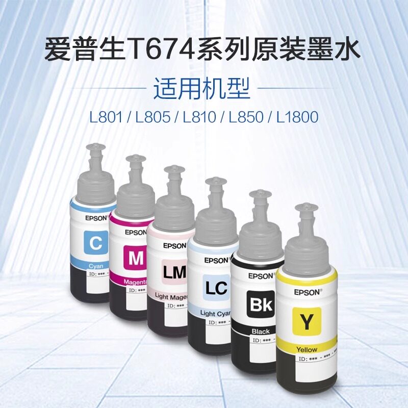 L805 打印机喷墨打印机 爱普生Epson L1800等墨仓式 L850 L810 适用L801 六色染料墨水 T674系列原装 自营