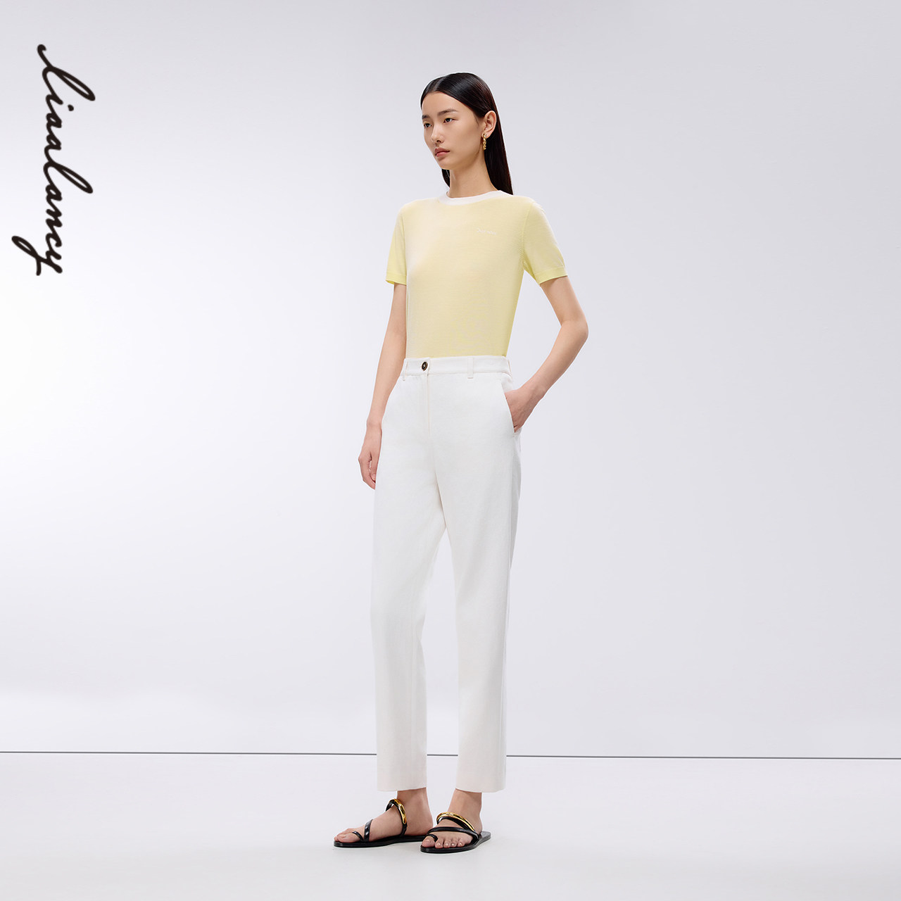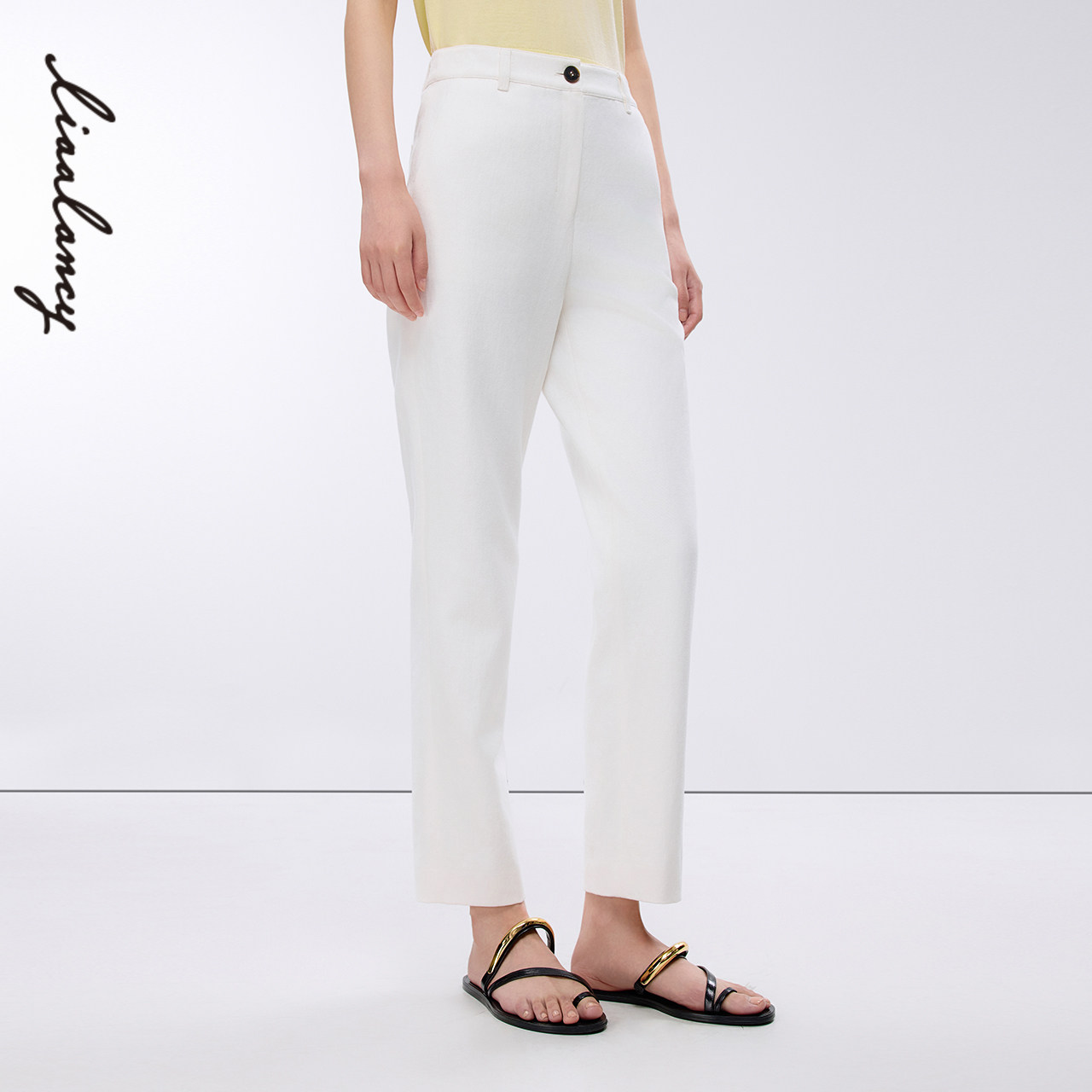 朗姿2025春新款 白色萝卜裤 通勤直筒西装 高腰九分小脚裤 女 裤 LANCY