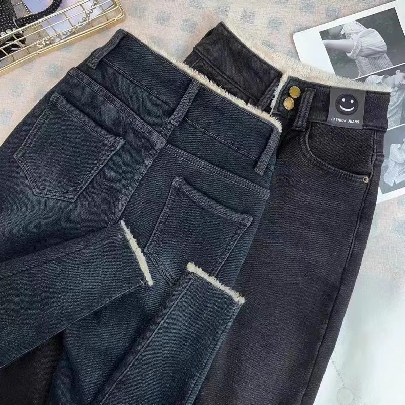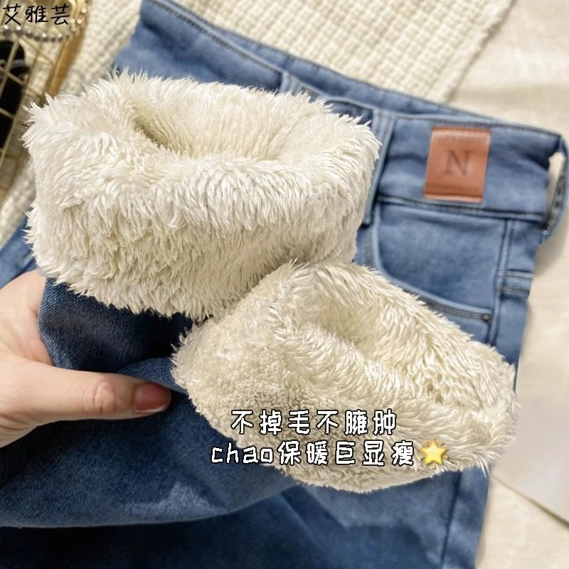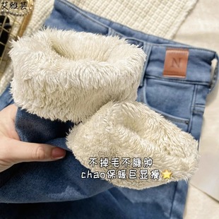 九分拉腿深冬加绒白牛神裤 韩女牛仔裤 超显瘦修身 靴靴穿搭伴侣