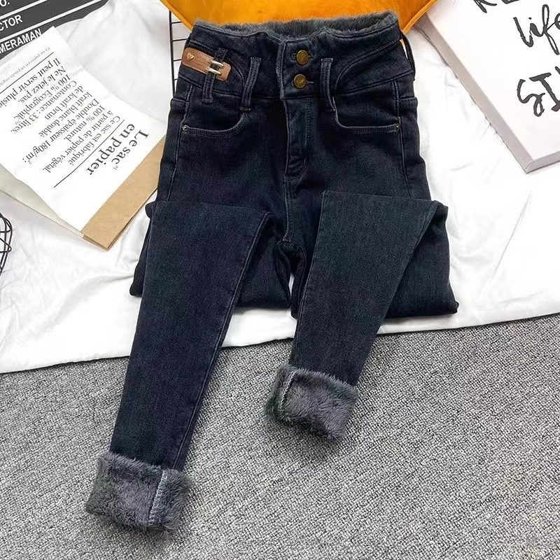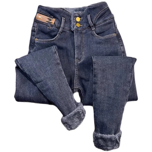 YoungGirlDay欧美辣妹高腰紧身显瘦加绒加厚小脚弹力铅笔裤 牛仔裤