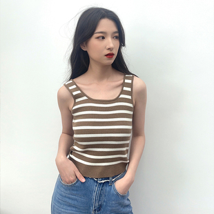 MSLAN条纹打底显瘦多色背心条纹无袖 背心MFBV1004 针织修身