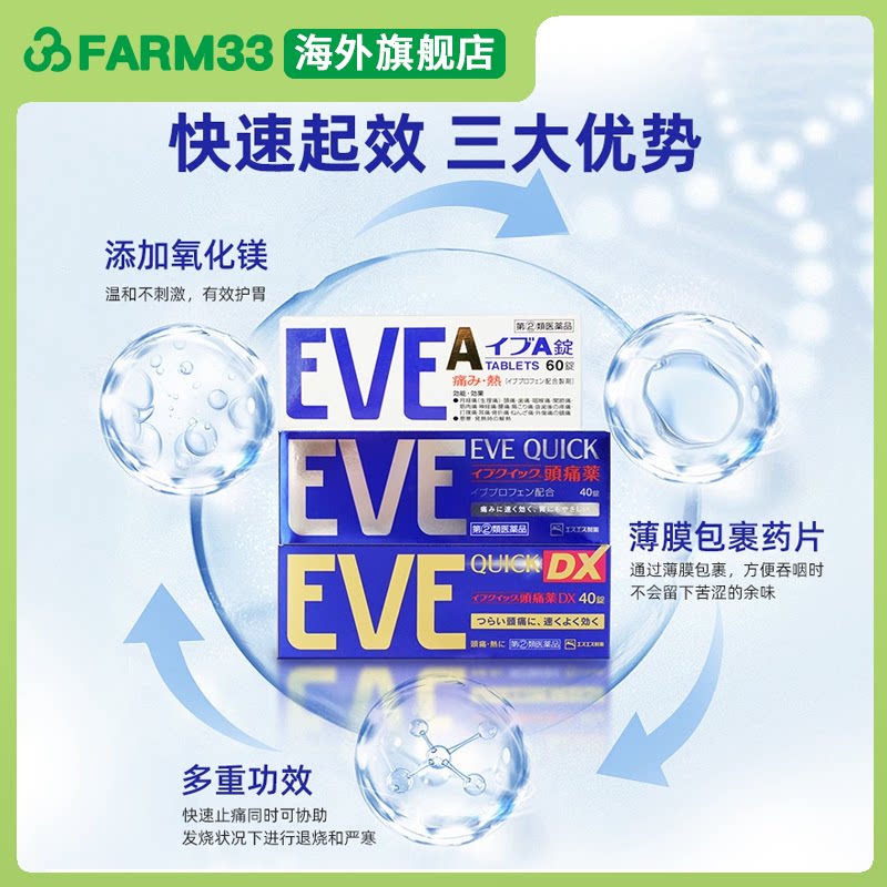 日本白兔eve止疼药头疼痛经喉咙痛牙痛布洛芬退烧药速效止痛药