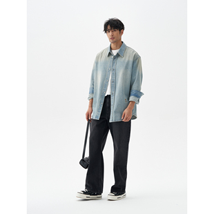 男士 潮流休闲工地裤 春秋款 耐磨百搭新款 子 宽松直筒男裤 弹力牛仔裤