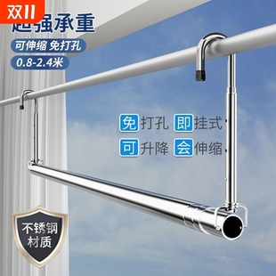 不锈钢可伸缩晾衣杆悬挂式 家用阳台晾衣神器衣服被子架升降衣架