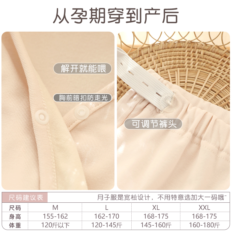 富朵 春秋月子服产后哺乳打底内衣孕产妇秋衣睡衣家居服 免穿文胸