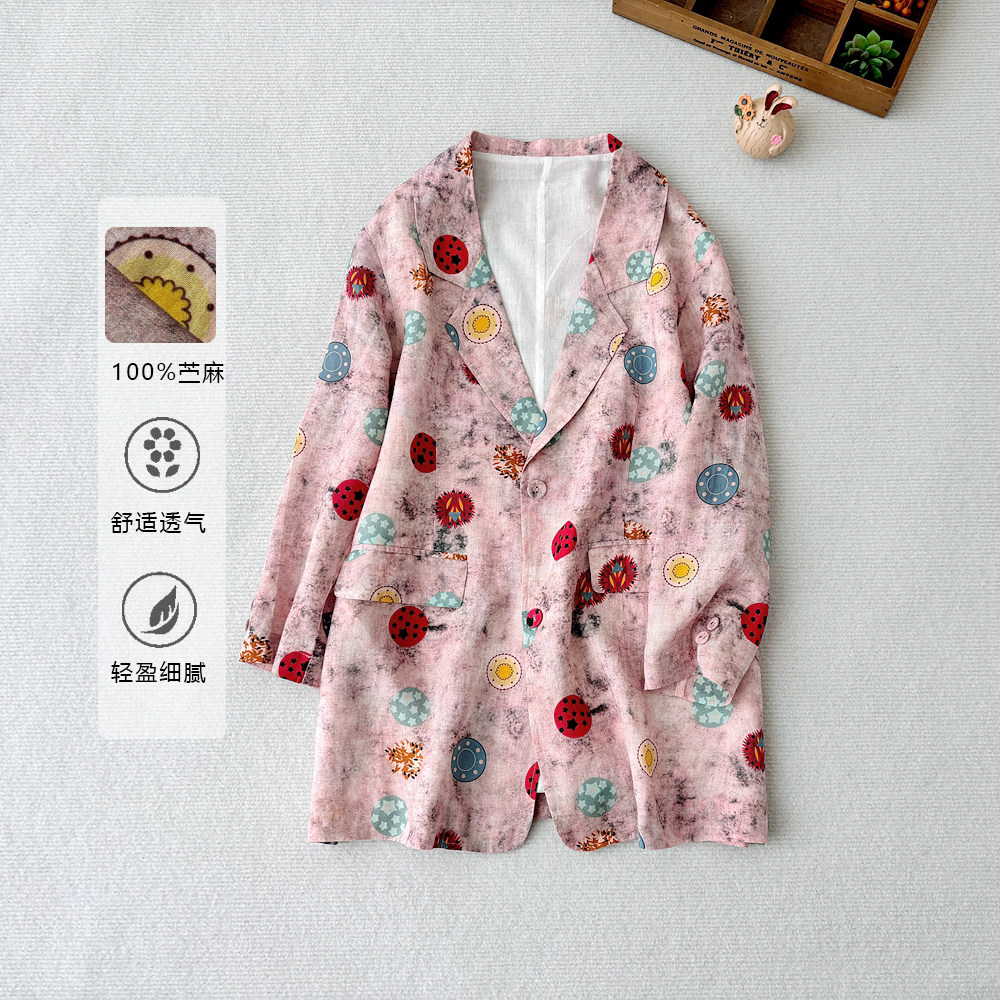 西装 九分袖 复古上衣 苎麻冷淡系休闲文艺范百搭花色高级感夏季 秋季