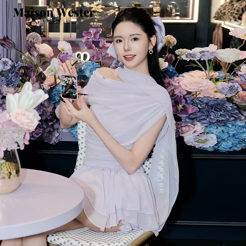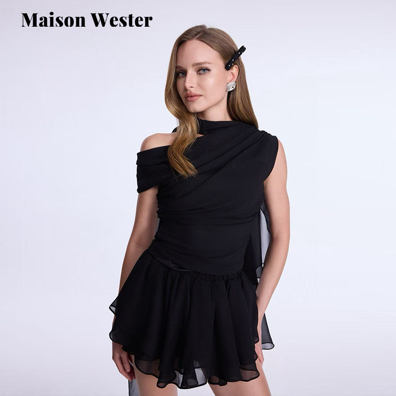 氛围修身 新款 雪纺斜肩飘带上衣可露丽穿搭 Wester2025夏季 Maison