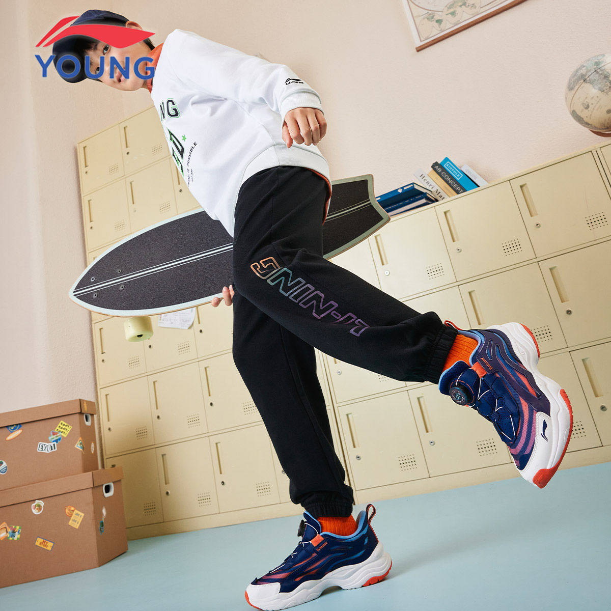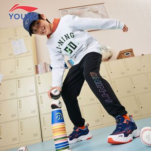 男士 子冬季 休闲跑步裤 宽松加绒针织长裤 男 李宁卫裤 运动裤 灰色裤