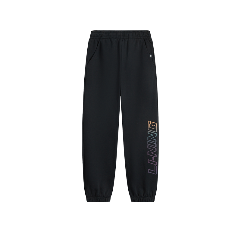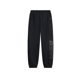 宽松加绒直筒针织运动长裤 李宁卫裤 子秋冬季 休闲黑色裤 女2025新款