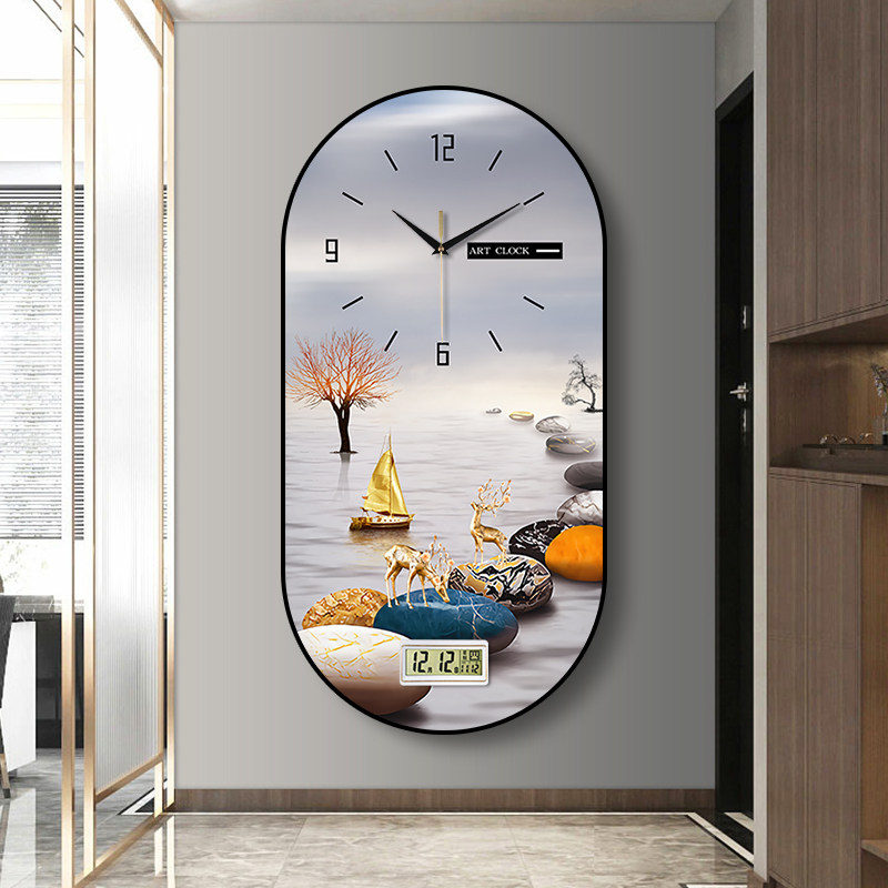 轻奢简约装 饰画挂钟万年历客厅家用静音准时餐厅背景墙挂墙时钟表