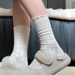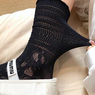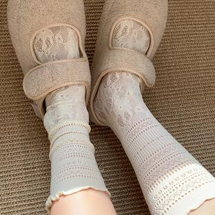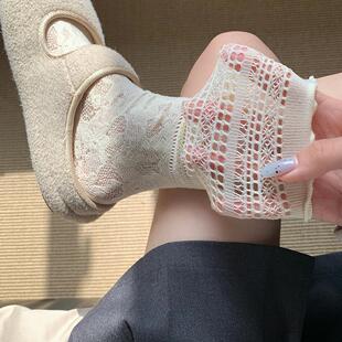 ins白色镂空蕾丝jk堆堆袜子女中筒配玛丽珍木耳边小腿袜薄款 夏季