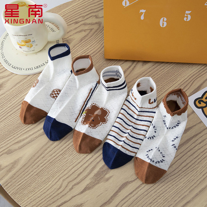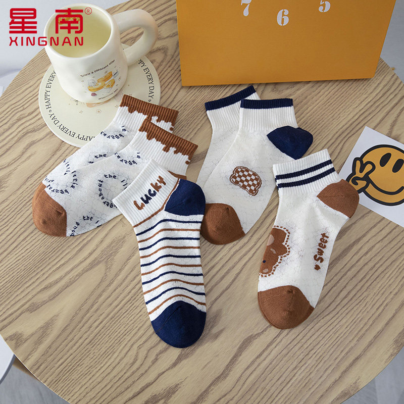 棉袜 纯棉短筒抗起球小熊网眼短袜吸汗透气春秋款 袜子女春夏季 薄款