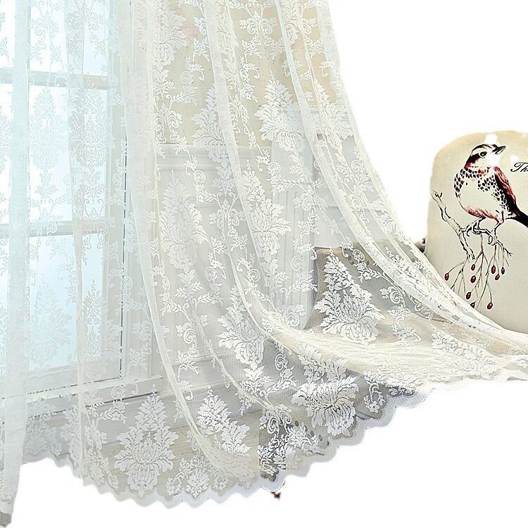 白色欧式 窗纱帘布料窗帘厂家直销蕾丝蚊帐公主大马革亚马逊