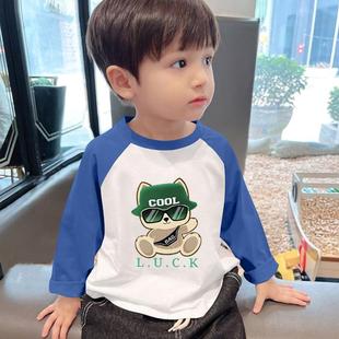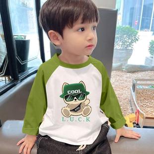 洋气小孩子帅气T恤衣服 儿童百搭上衣新款 100%纯棉男童春秋款 长袖