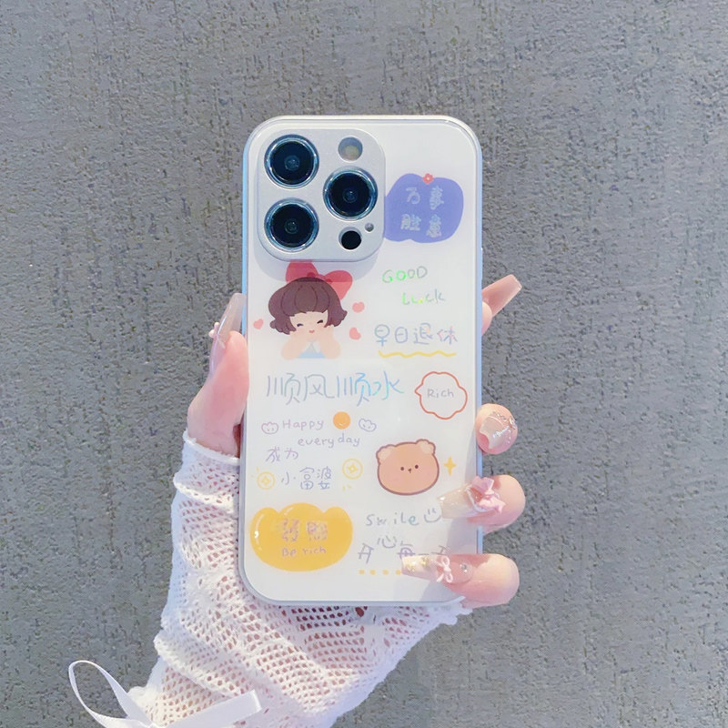 顺风顺水未来可期玻璃壳适用苹果16pro手机壳iPhone17max小米15华为mate60p50荣耀200x100k70nova14note13s19