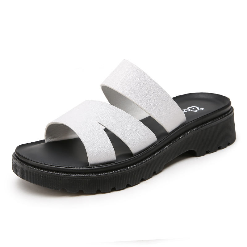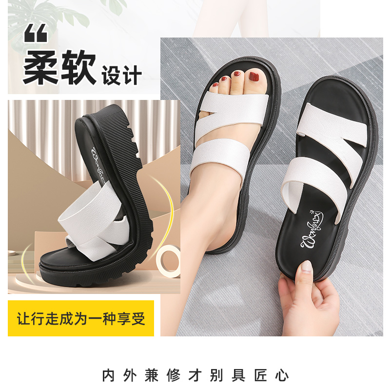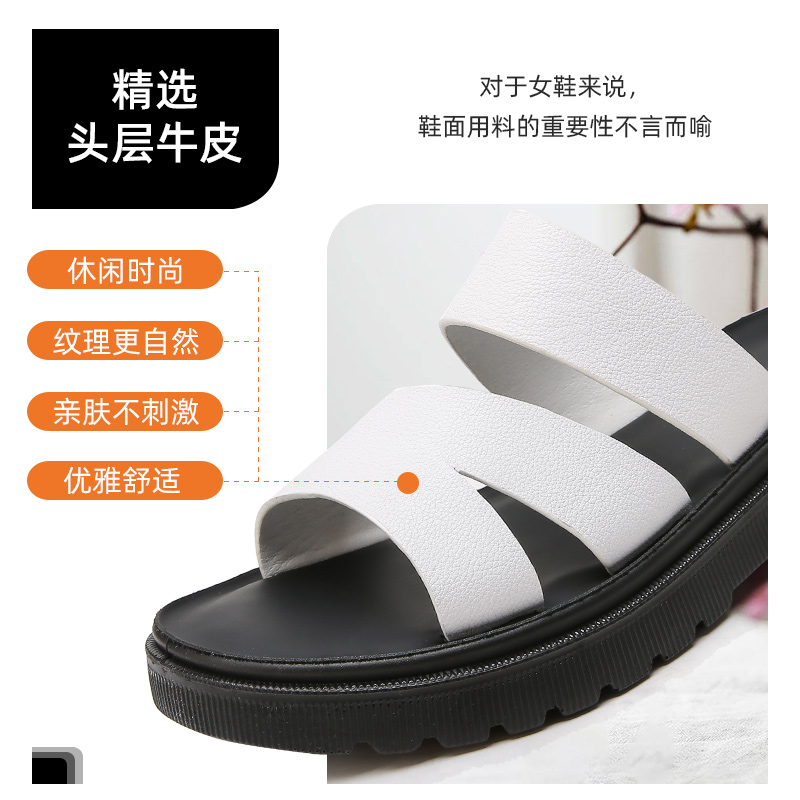 松糕厚底凉拖外穿青年百搭大码 时尚 一字拖清仓 女夏季 旺奈真皮拖鞋