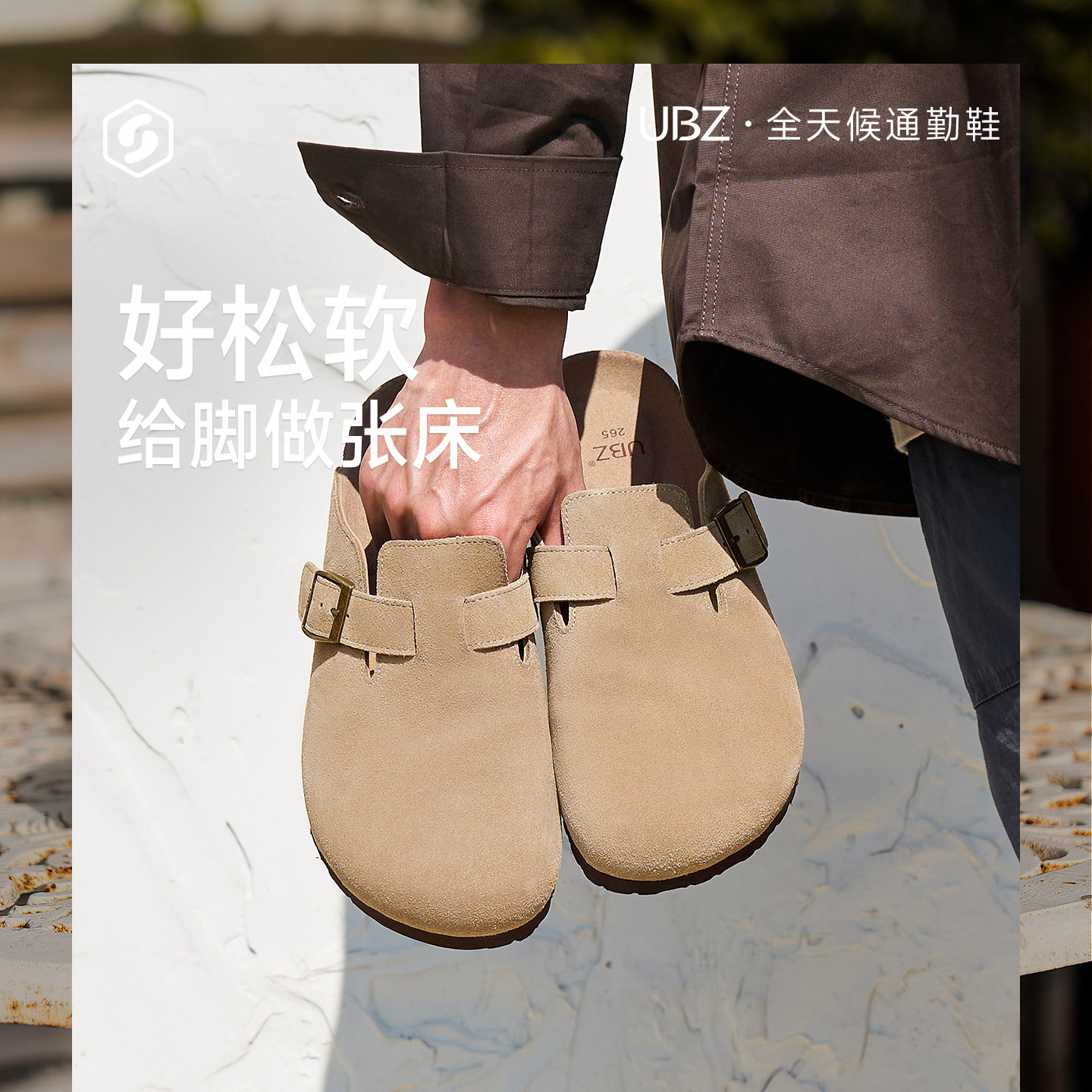 真皮 一脚蹬懒人博肯鞋 春秋勃肯鞋 女包头孕妇半拖外穿2025复古新款