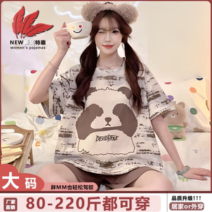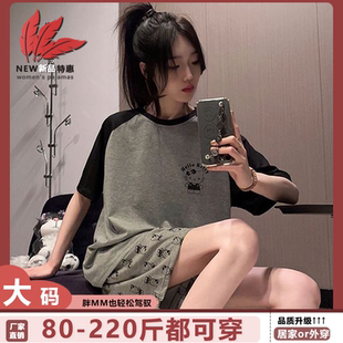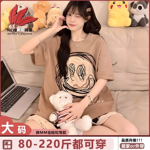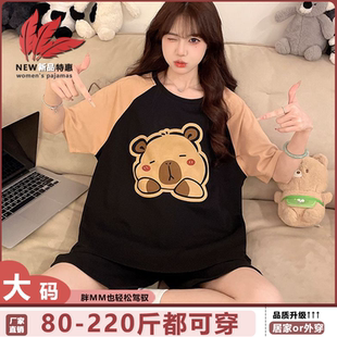 甜美可爱胖mm家居服宽松夏季 网红风睡衣女大码 短裤 短袖 200斤夏款
