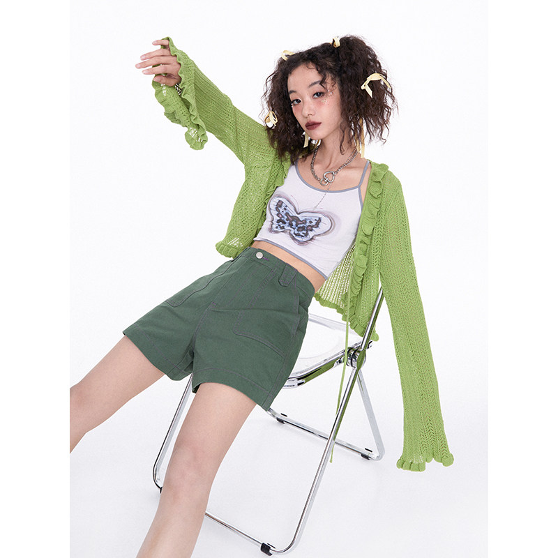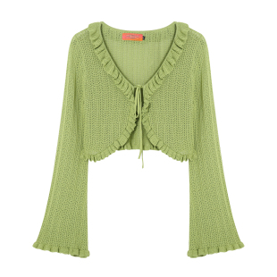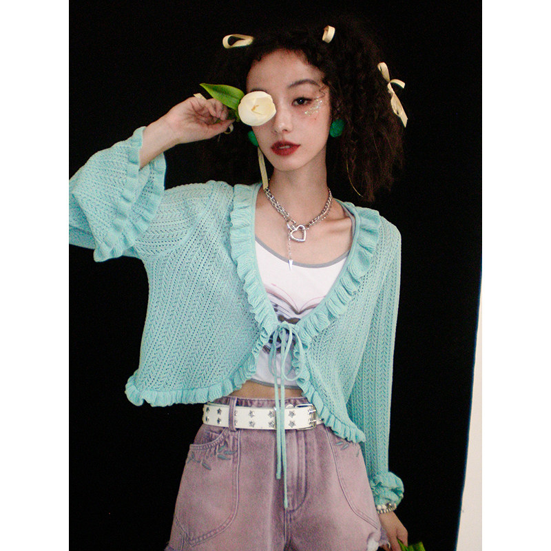 开衫 针织长袖 春夏上衣 宽松系带喇叭袖 化学少女「编织梦境」短款