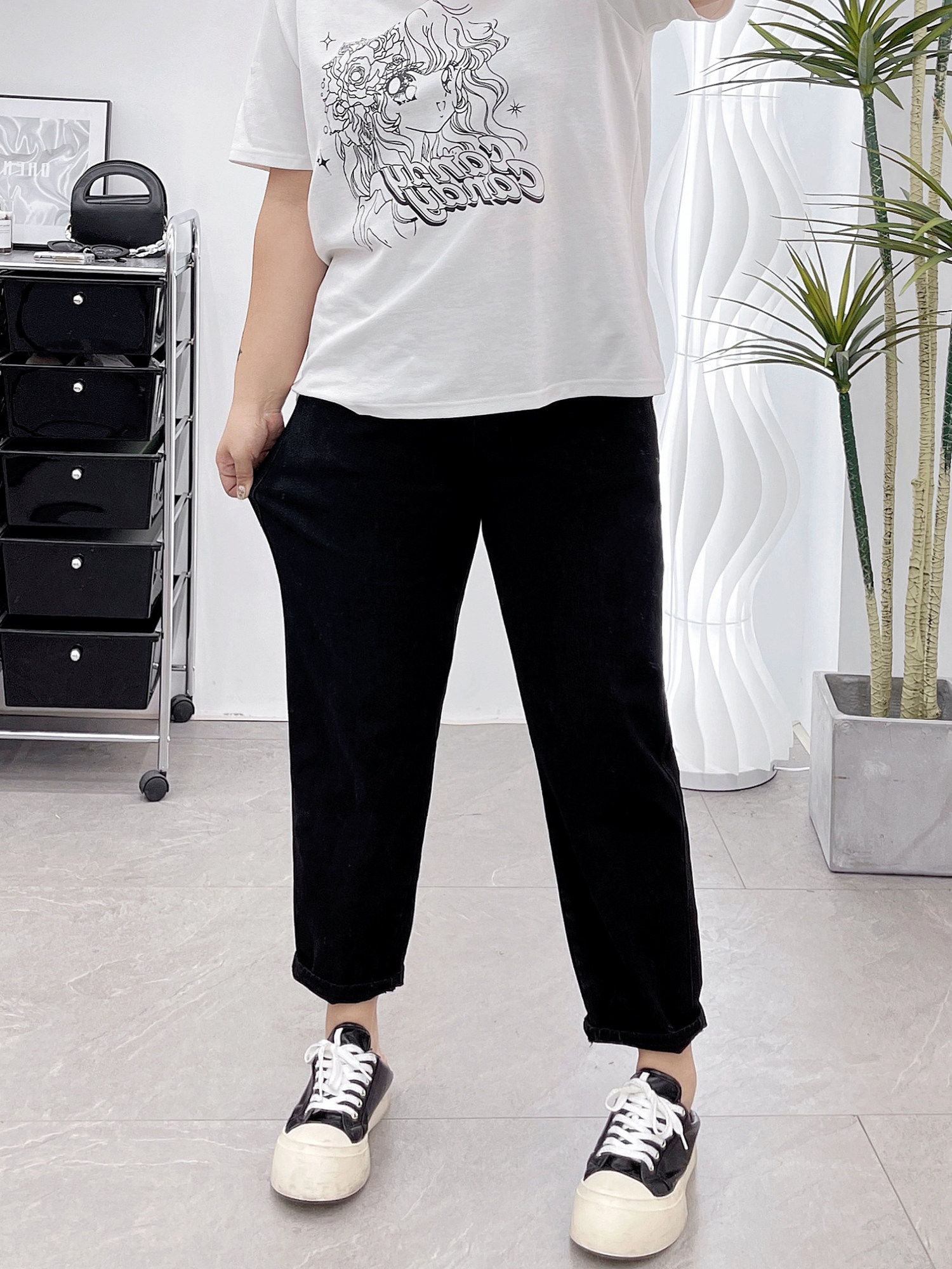女松紧腰宽松阔腿裤 冬季 木子理想大码 胖mm休闲裤 200斤 加厚山本裤