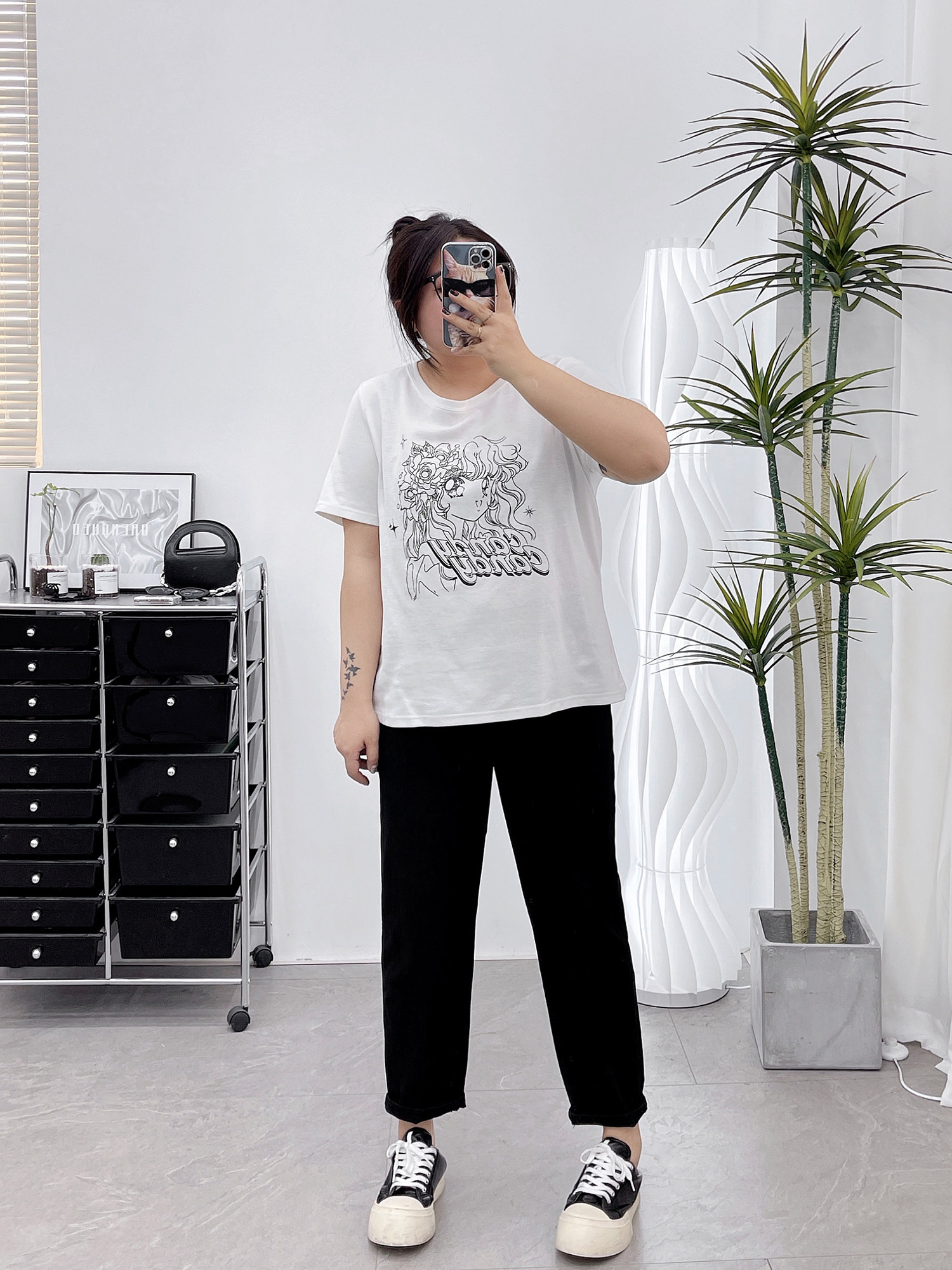 子女装 猫咪加绒加厚休闲卫裤 秋冬季 新款 大码 亚文化阔腿运动裤 美式