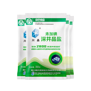 无碘不加抗结剂甲状食用盐巴优级 4袋 川晶 未加碘深井晶盐350g