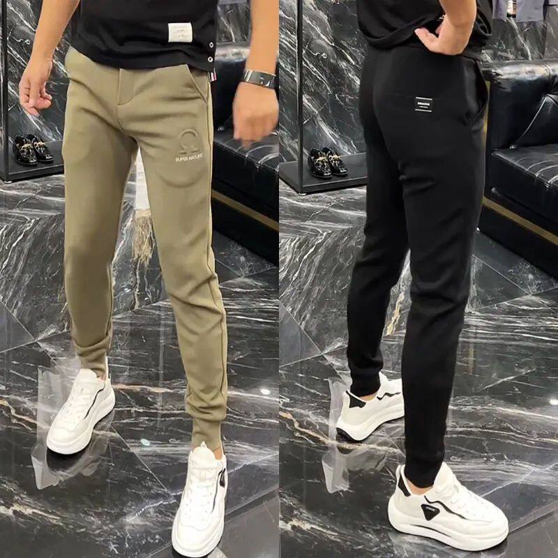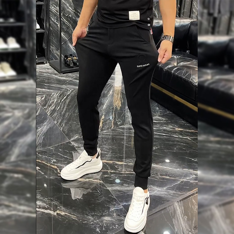 卫裤 子春夏季 男百搭休闲裤 男压花弹力裤 潮牌小脚运动裤 高端修身