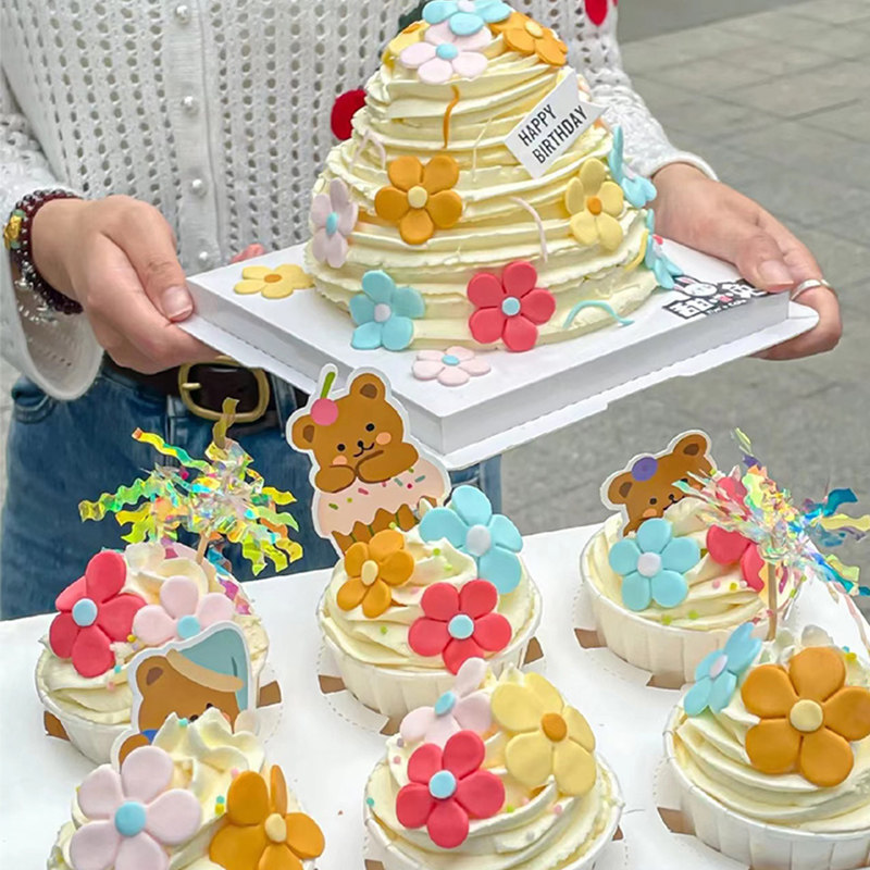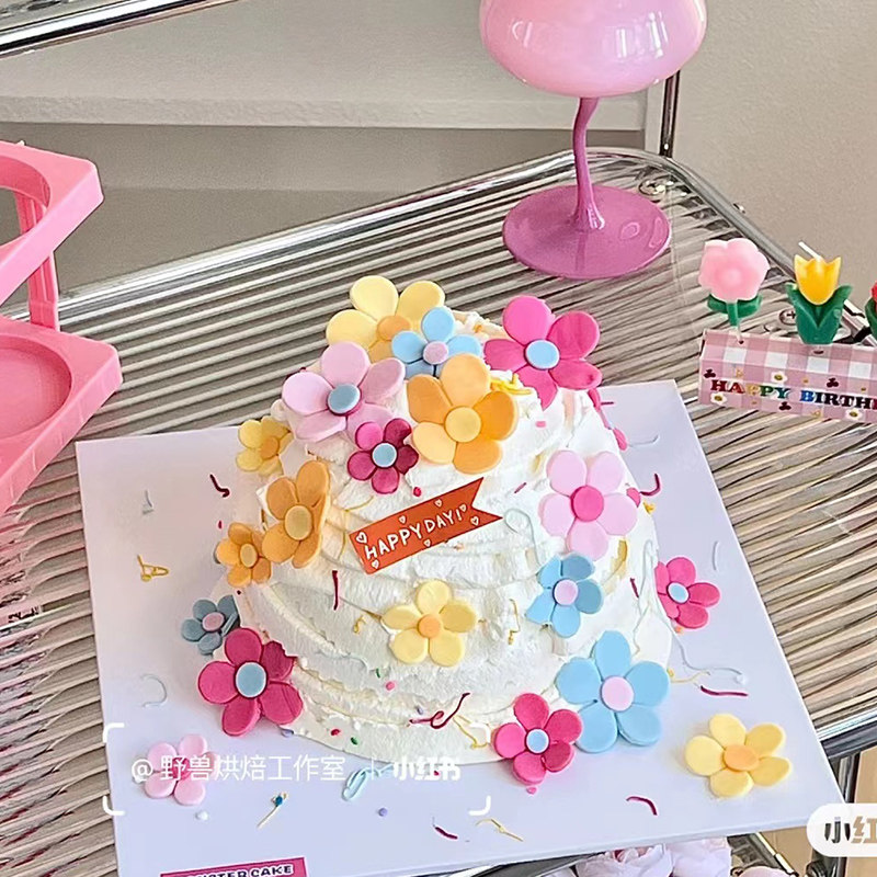 ins风彩色花朵蛋糕装 Flower甜品翻糖立体小花朵插件 饰摆件春日季