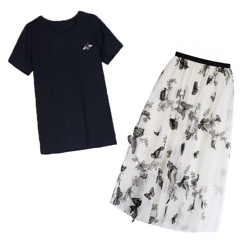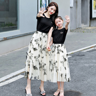 短袖 亲子装 新款 连衣裙夏装 t恤两件套网纱半身裙洋气网红 母女套装