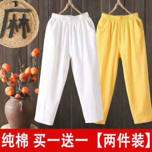女夏季 纯棉九分裤 高腰显瘦休闲哈伦裤 宽松大码 子 单 萝卜裤 两件装
