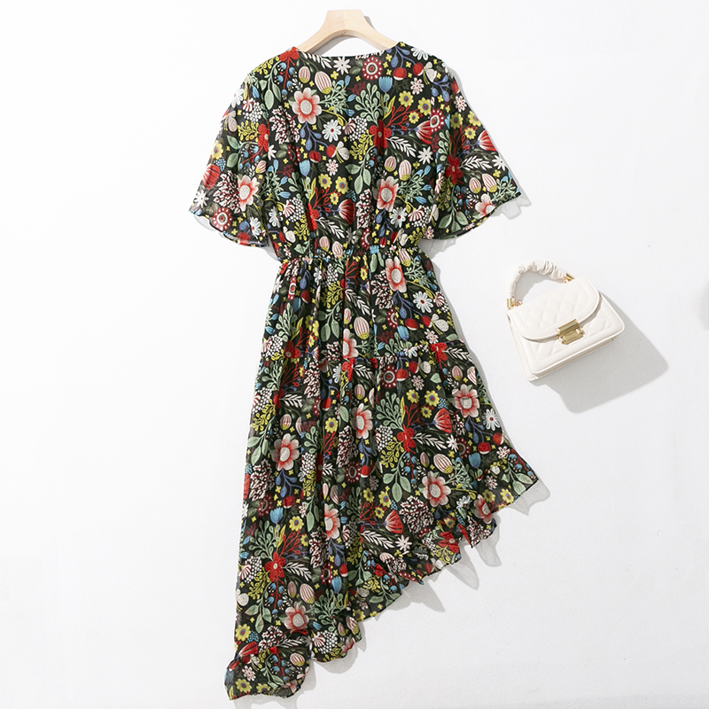 民族风波西米亚沙滩裙连衣裙长裙棉绸印花高腰海边度假碎花裙绵绸