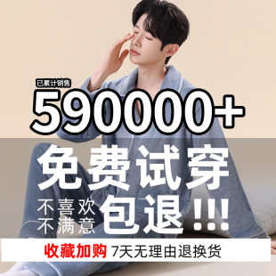 男生法兰绒新款 南极人男士 加绒加厚珊瑚绒家居服套装 冬季 睡衣男款
