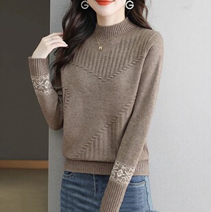 鄂尔多斯市半高领秋冬毛衣女洋气妈妈羊毛衫 宽松遮肚子羊绒打底衫