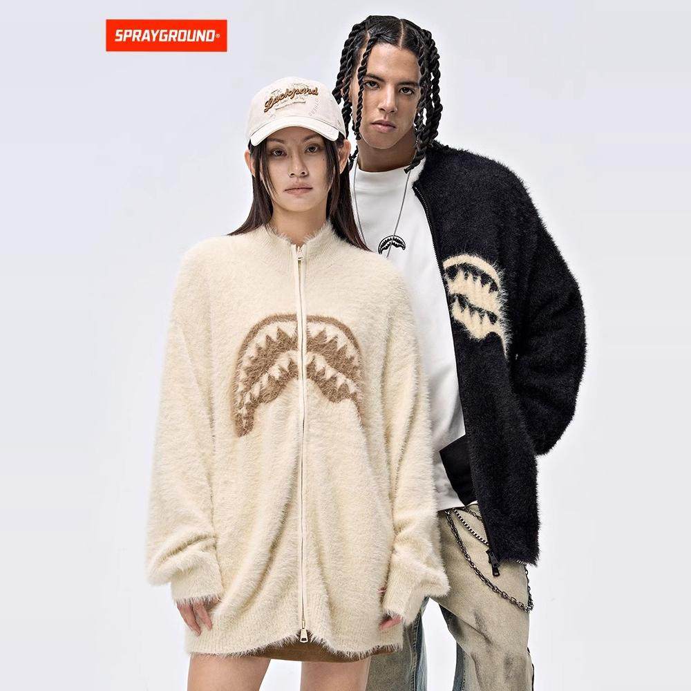 SprayGround鲨鱼嘴25秋冬开衫 针织外套潮 毛衣男女毛绒宽松情侣款