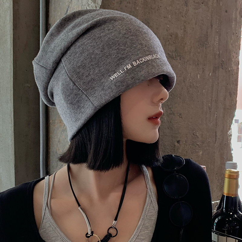 黑色堆堆帽女秋冬季 大头围显脸小包头针织冷帽产后产妇月子帽子潮