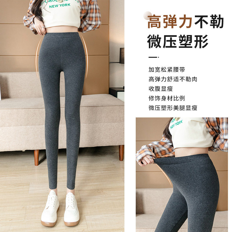 女外穿春秋季 紧身黑色九分裤 薄款 弹力大码 高腰显瘦秋裤 纯棉打底裤