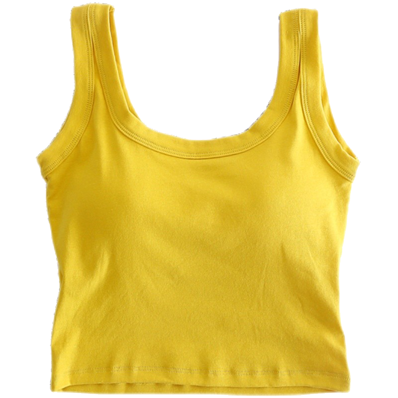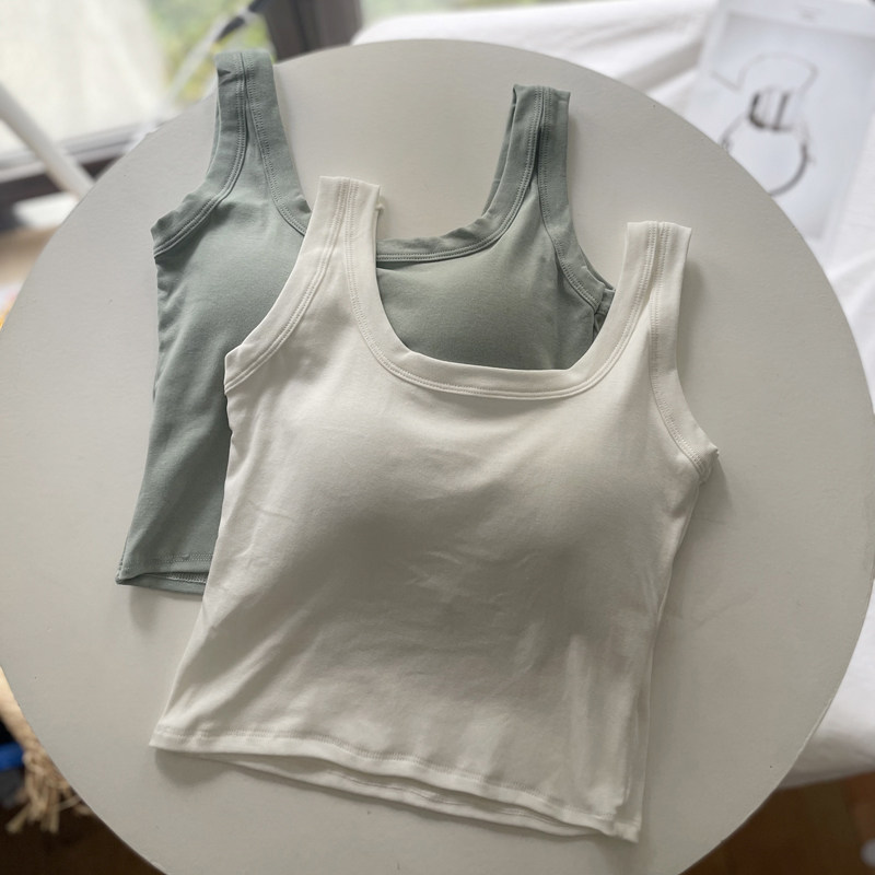 纯棉 带胸垫运动外穿夏季 白色吊带背心女内搭美背打底无袖 上衣短款