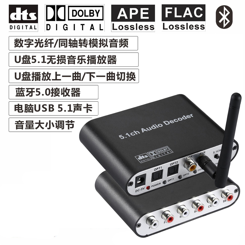 器数字光纤同轴转5.1功放音响转换器AC DTS无损音频U盘播放蓝牙5.0接收电脑usb声卡 杜比5.1声道解码 皮乐仕