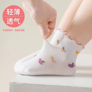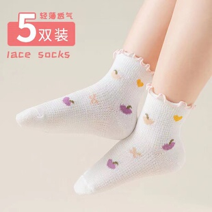 女童袜子夏季 儿童夏天网眼花边袜宝宝春秋小孩透气百搭公主袜 薄款