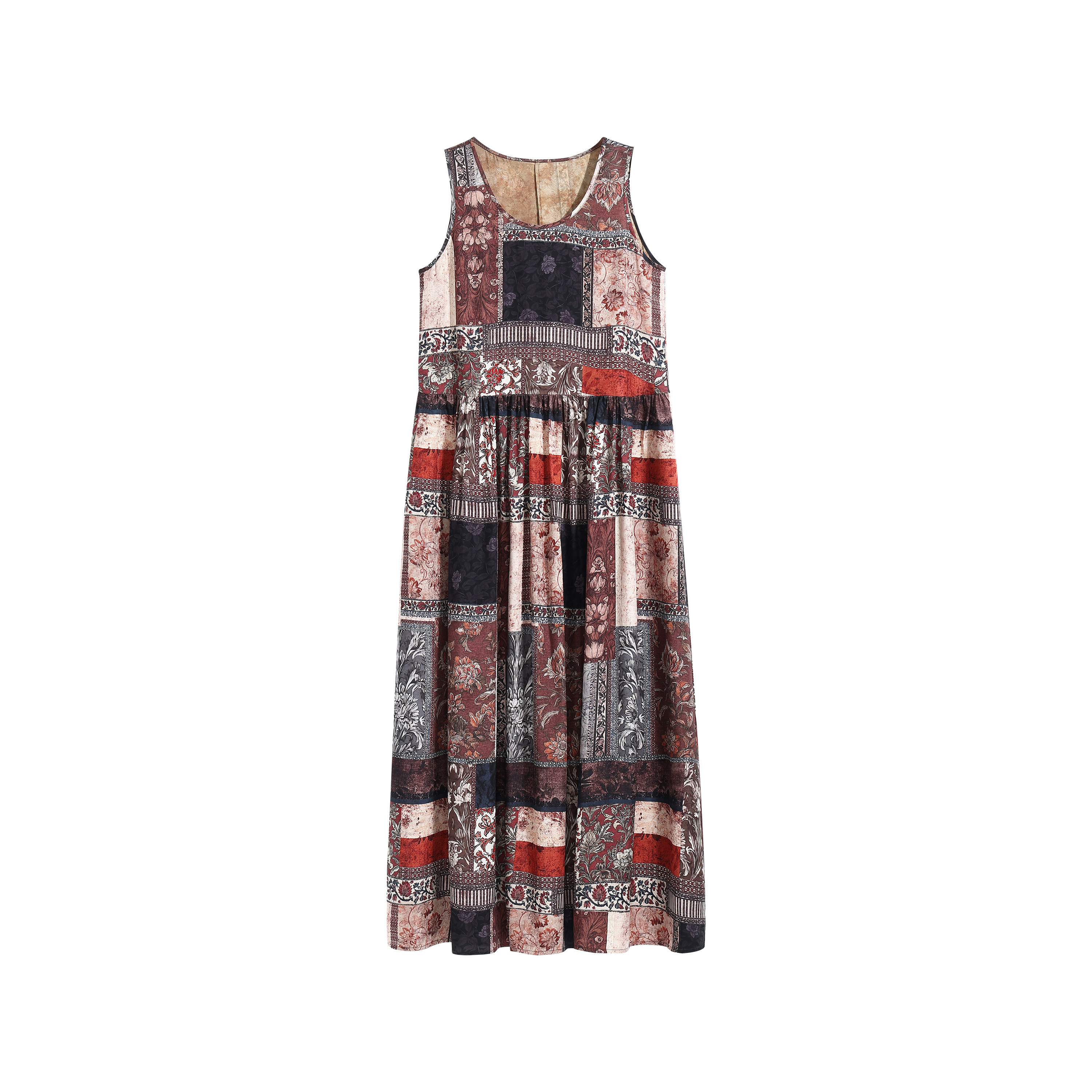 铜氨拼色双面印花无袖 浮光花影 连衣裙BXQ2016 朵朵专属