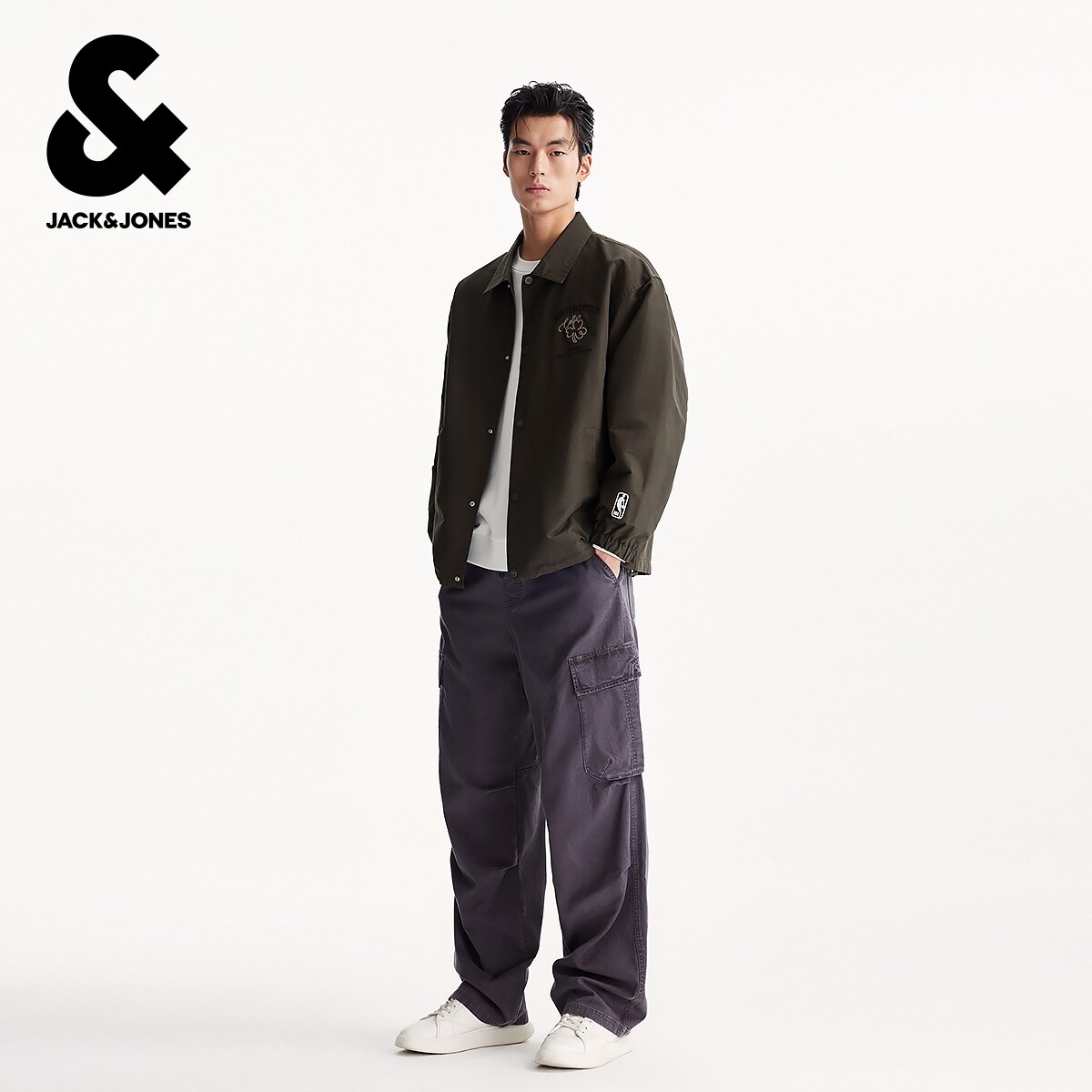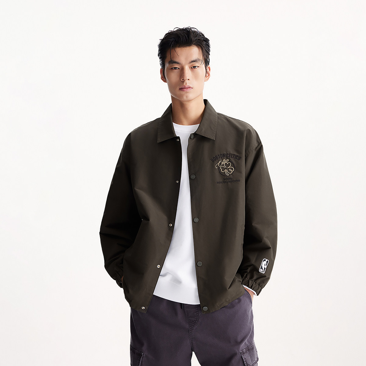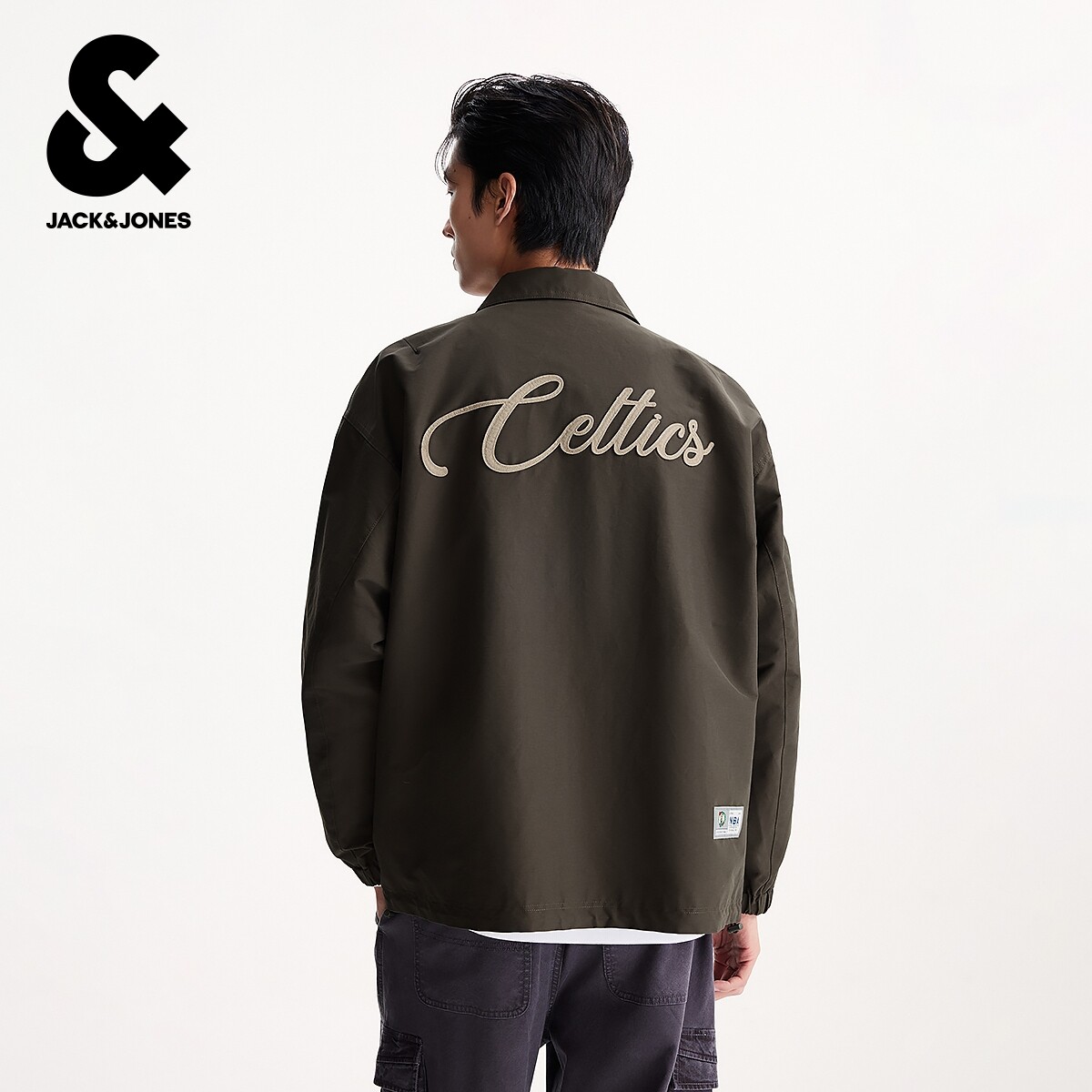 杰克琼斯NBA凯尔特人队联名春季 胸口刺绣宽松翻领外套夹克男装