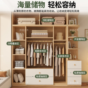 原木风儿童衣柜简易家用卧室现代出租房用爆款 小户型省空间挂衣橱