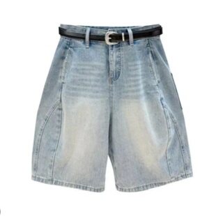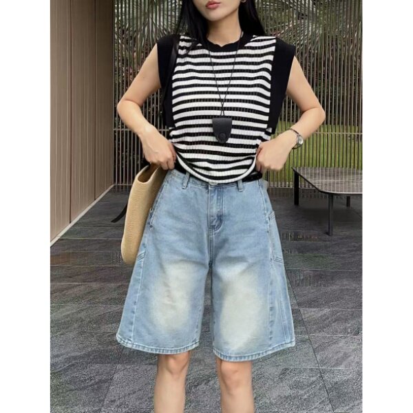 五分裤 3048 女款 高腰直筒牛仔短裤 宽松阔腿 「微风联想」夏季